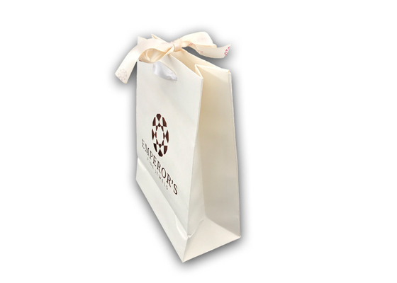 Логотип печати роскошных белых штейновых бумажных присутствующих сумок горячий с ручками |